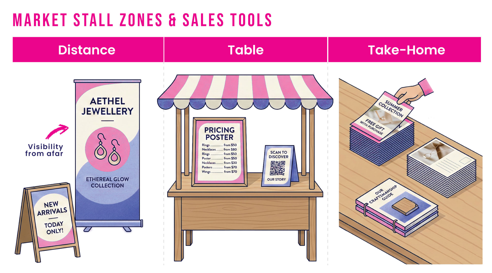 A market stall is a fast decision environment. Customers are moving, scanning, comparing, and often deciding in seconds. Your print materials need to do three jobs clearly: